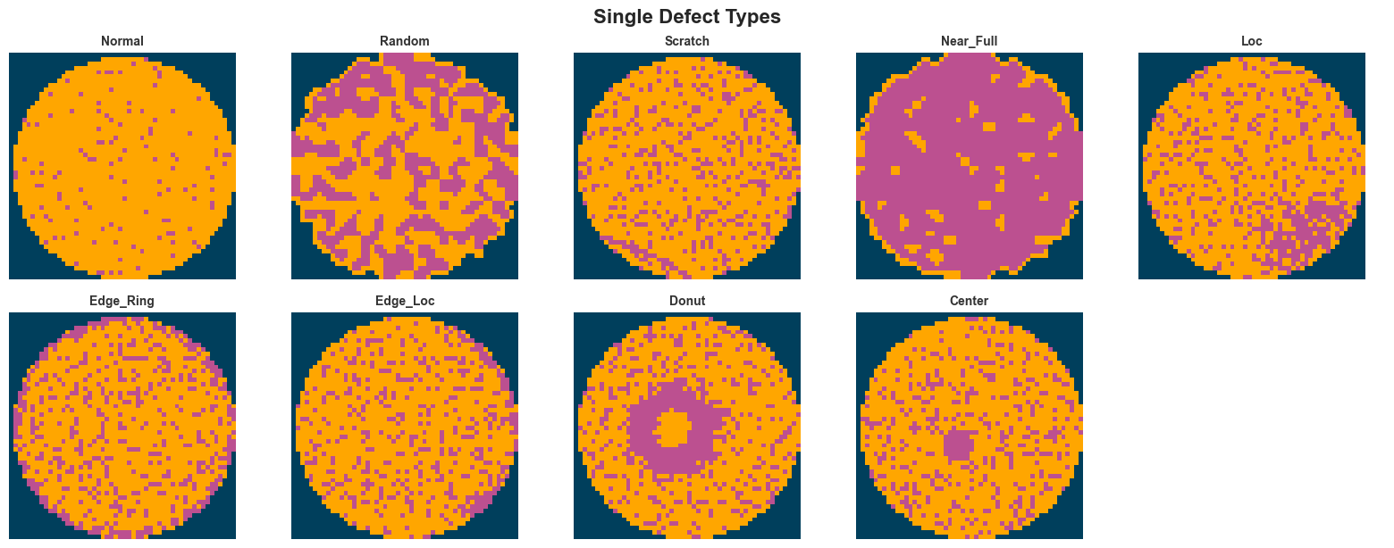 fig.suptitle("Single Defect Types", fontsize=16, fontweight="bold", y=1.02)